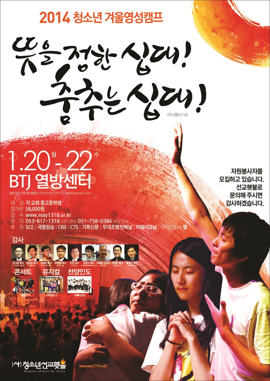2014년 제13회 청소년영성캠프 페이지 정보 작성자 관리자 댓글 0건 조회 1,365회 작성일 19-04-27 01:53 본문 2014년 제13회 청소년영성캠프 '뜻을 정한 십대 춤추는 십대' 목록 이전글2015년 기독교세계관학교 19.04.27 다음글2014년 제21회 청소년선교대회 19.04.27 댓글목록 댓글목록 등록된 댓글이 없습니다.