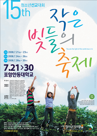 2008년 제15회 청소년선교대회 페이지 정보 작성자 최고관리자 댓글 0건 조회 1,095회 작성일 19-04-16 11:00 본문 2008년 제15회 청소년선교대회 '작은 빛들의 축제' 목록 이전글2008년 제8회 청소년영성캠프 19.04.27 댓글목록 댓글목록 등록된 댓글이 없습니다.